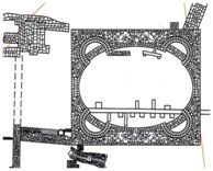 Inoltre l’andamento interno, curvilineo, della porta settentrionale sembra ben corrispondere a quello della porta costruita sulla banchina meridionale del canale Anfora, a sud del circo (fig. 5).