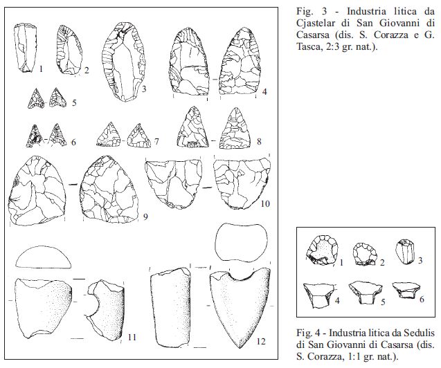I materiali litici qui presentati provengono dai terreni posti immediatamente a nord ovest del Cjastelar, al di là del corso del Lin, e possono essere distinti in due gruppi cronologici.