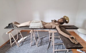 Accompagnato dall’architetto Sandro Pittini, l’Assessore ha visto subito nella cappella vuota e malridotta un grande Cristo Crocifisso in legno di quasi tre metri, appeso ad una parete. È stato subito interpellato un insigne studioso di scultura lignea come il Prof. Luca Mor che ha confermato l’importanza della statua, ipotizzando una datazione compresa fra il XII e il XIII secolo, forse addirittura precedente a quella del prezioso Cristo nel Duomo di Santa Maria Assunta, sempre a Cividale.