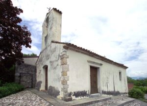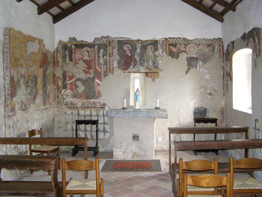 Alla fine del XIV sec. o dall’inizio del 1400, le pareti dell’abside furono arricchite con il ciclo pittorico raffigurante S.Pietro, la Madonna e la Crocifissione.