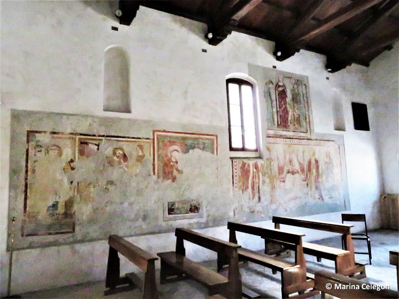 All’interno sono presenti affreschi, realizzati a varie riprese, tra il secondo quarto del XIV e i primi anni del XVI secolo.