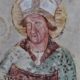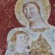 La Madonna che allatta il Bambino. La Madonna è avvolta in un manto, originariamente di un azzurro vivace, ed è seduta sul trono contro un drappo d’onore rosso con il Bambino, vestito come un piccolo adulto, è seduto sulle ginocchia. Probabilmente quest’opera venne realizzata da un pittore locale verso la fine del XIV secolo.
