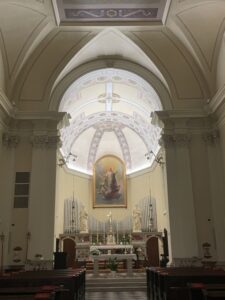 L’attuale chiesa è composta da una navata unica rettangolare, con una nicchia absidata per lato, e da un presbiterio a base rettangolare concluso sul fondo dall’abside quattrocentesca.