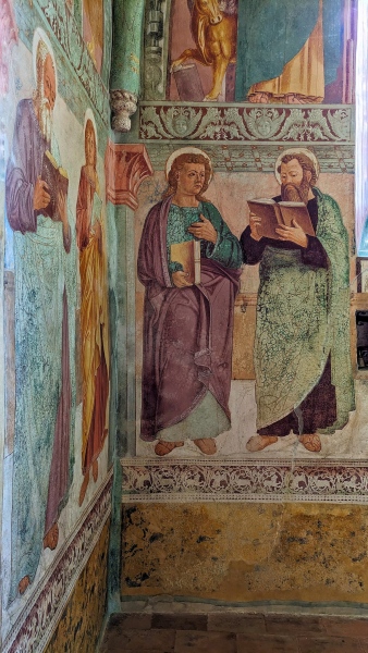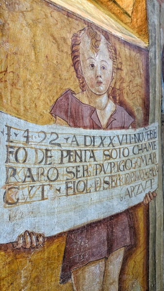Il vecchio atrio e il coro erano a due piventi, coperti di tavole a forte pendenza, il resto della chiesa era a pendenza ordinaria, coperto sempre da scandole.