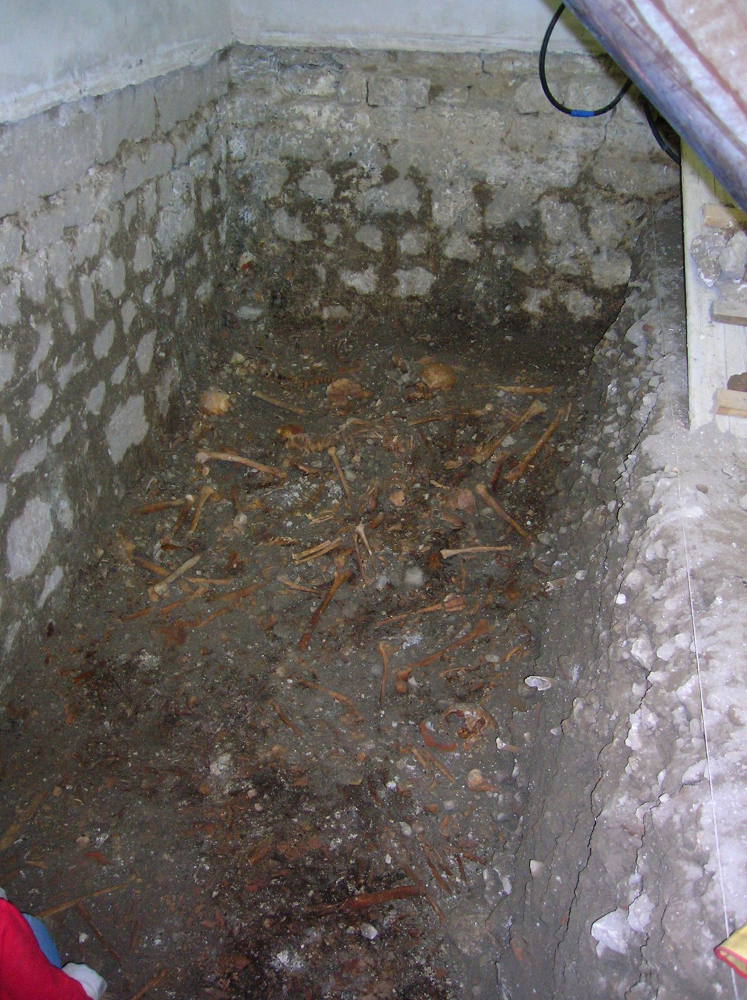 Il restauro delle pitture è avvenuto, sponsorizzato dal Rotary Club di Gemona e seguito direttamente dalla Soprintendenza (vedi articolo in calce). Intanto sono stati terminati l’ambiente inferiore del lapidario e quello, assai complesso, nel quale si è recuperato l’ossario, una cripta inglobata nelle fondamenta del Duomo otto metri sotto il sagrato. In quello spazio rimasto vuoto per secoli erano state accumulate alla rinfusa le ossa riesumate dal vecchio cimitero del Duomo. All’inizio dell’Ottocento le leggi napoleoniche avevano imposto la chiusura delle aree cimiteriali urbane e così, nel 1825, l’ossario fu riempito di terra, sigillato e dimenticato.