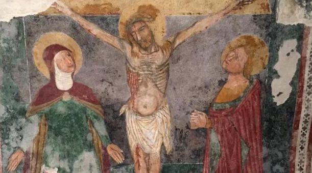 «Nella parte superiore dell’ossario – spiega ancora Vale – e più precisamente nella copertura a volta a botte ci sono ancora due affreschi: un San Nicolò e una Crocifissione datata 1473. In questo caso il restauro ha permesso di migliorare di molto la leggibilità dell’opera aumentando la definizione delle figure e il suo fondale».