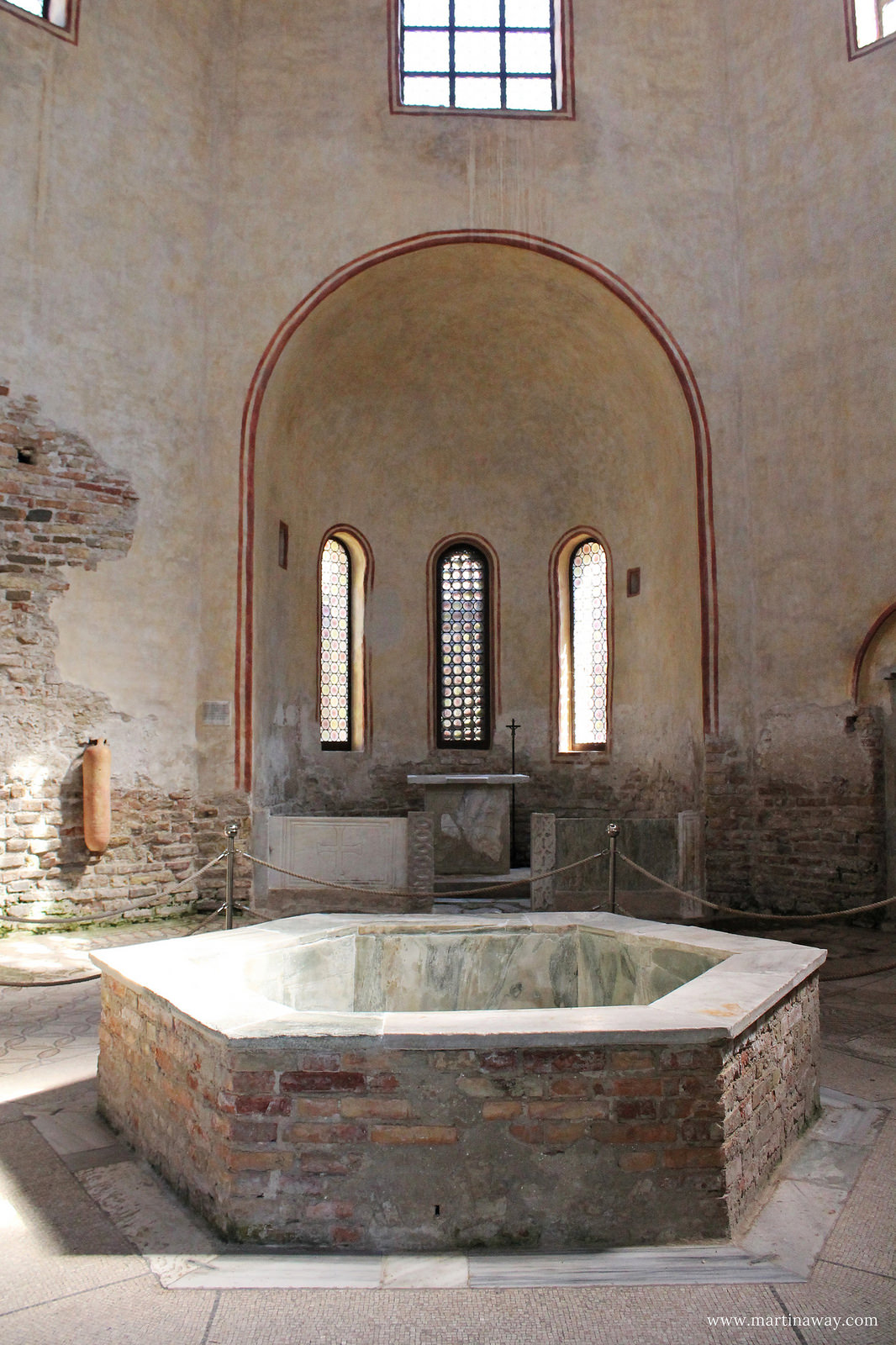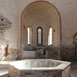 In tale modo è stato riscoperto il pavimento musivo del VI secolo assieme al piccolo altare, ora posto nell’abside aperta in fondo all’ingresso, ed il fonte battesimale, a pianta esagonale e ricoperto di marmo cipollino verde. I finestroni originari sono stati riaperti ed è stato ripristinato l’antico piano stradale posto davanti al battistero.