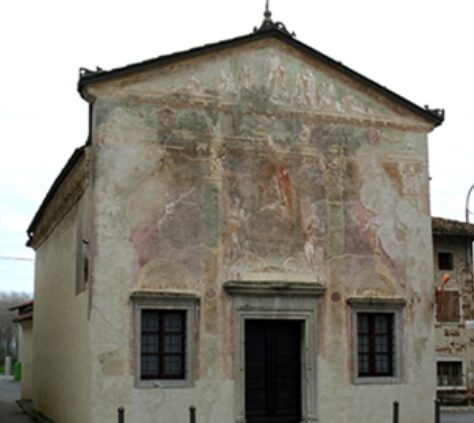 La facciata, a capanna, presenta finte architetture ed affreschi del pittore Rocco da Venezia (XVIII sec.). La pittura, sbiadita dal tempo e dalle intemperie, lascia appena intravedere un’Annunciazione. Alla stessa mano sono da attribuire gli affreschi dell’abside, dove ora vi sono pitture ottocentesche con il Martirio di San Giovanni Battista e San Giovanni Evangelista con l’aquila.