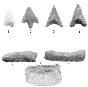Nelle arature della stessa zona sono state recuperate punte di freccia ed elementi di falcetto attribuibili, per tipologia, alla prima età dei metalli.