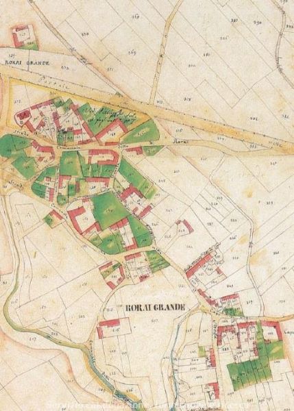 La chiesa di San Lorenzo martire a Rorai Grande doveva essere circondata da una centa ovoidale, come si evince dal catasto napoleonico, prima di essere ampiamente modificata all’inizio del XX secolo.