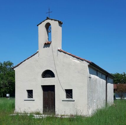 La chiesa, di ridotte dimensioni, è ad aula unica rettangolare e si trova in un ambiente campestre.