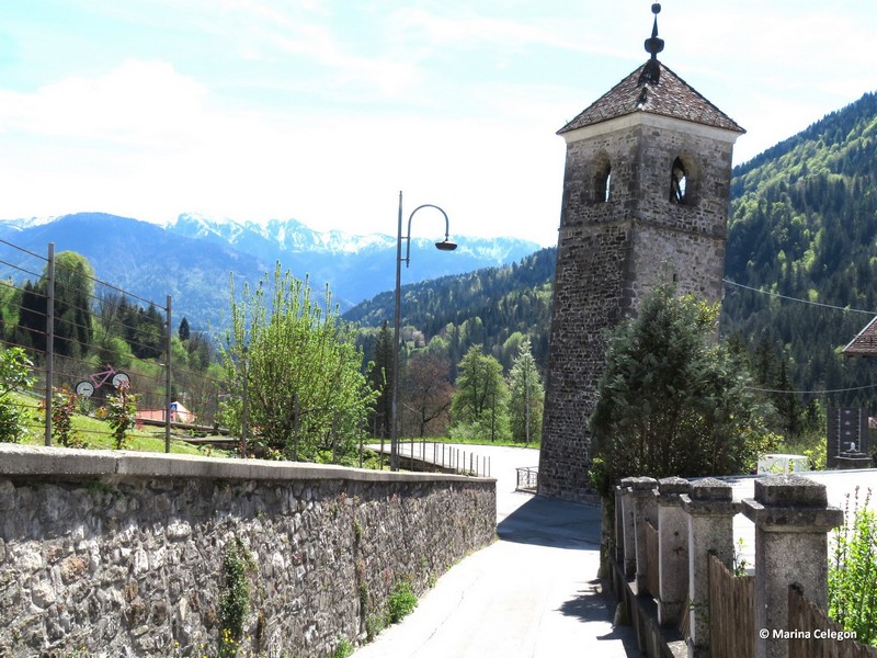 Nella frazione di Prato del comune di Prato Carnico, in uno slargo adibito a parcheggio a sinistra della Statale, zona anticamente sede del cimitero e della parrocchiale, si nota un campanile isolato e molto pendente, con la base più bassa del livello della strada e privo del culmine. I locali lo chiamano “il tòr da Prât” ed è quel che rimane dell’originario complesso della parrocchiale di Prato.