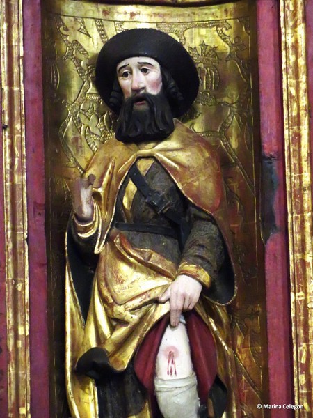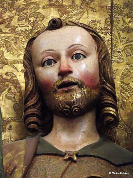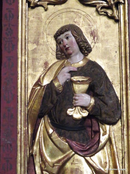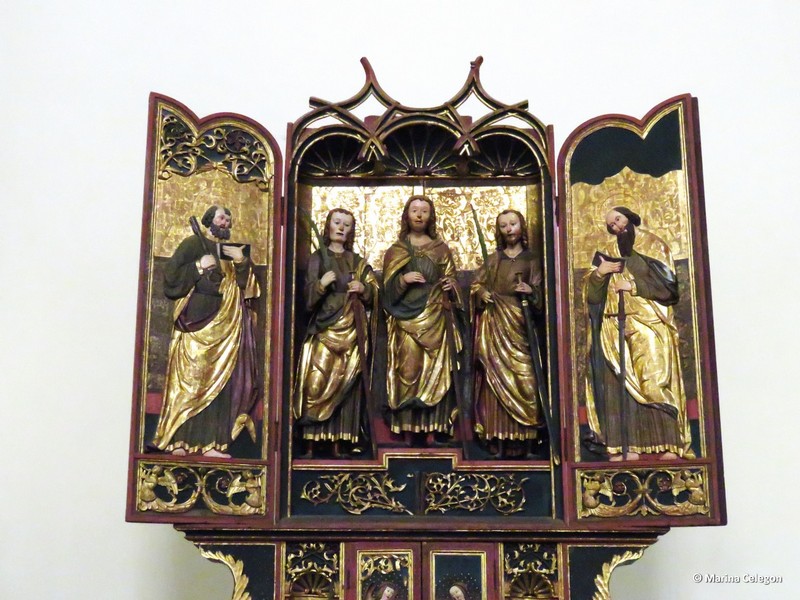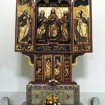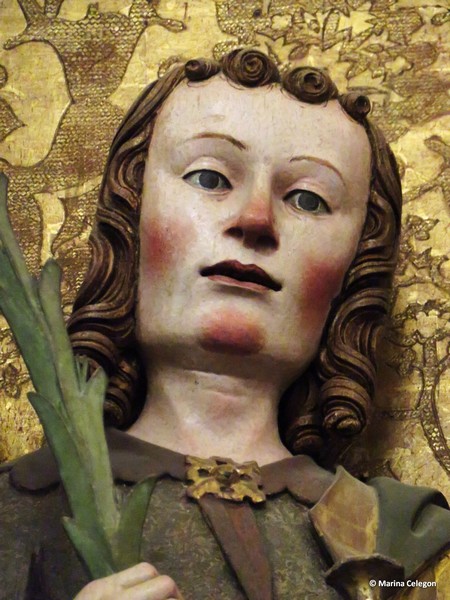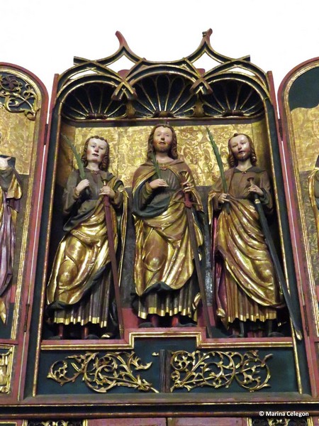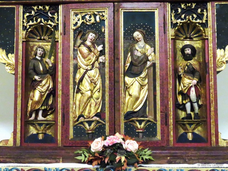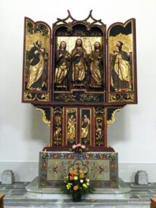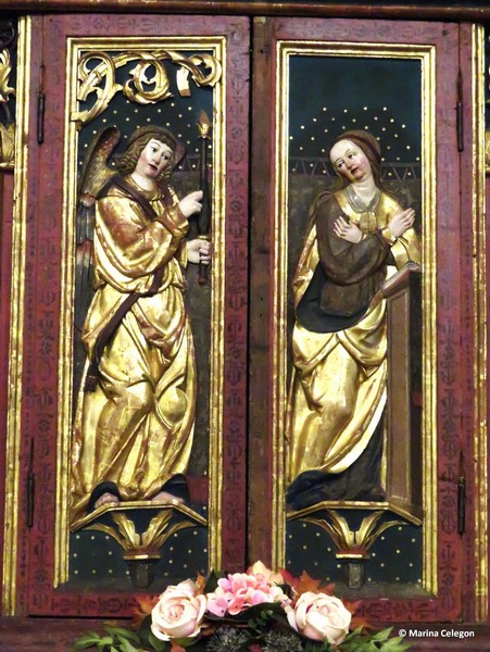 Il flugelaltar, intagliato, dorato e dipinto, è privato del consueto coronamento, a guglie e arabeschi con statuette sospese frammezzo (Aufsatz o Gespreng), ma per il resto è bene conservato. Grazie alla sua collocazione è possibile vedere anche il retro dipinto dell’altare.