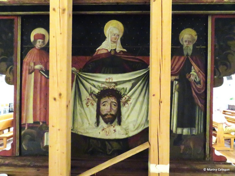 La nuova parrocchiale, collocata più in alto, contiene numerose opere d’arte antiche provenienti da antiche chiese non più esistenti, tra le quali spicca il Flügelaltar di Michele Parth, uno dei capolavori della scultura lignea del Cinquecento in regione.