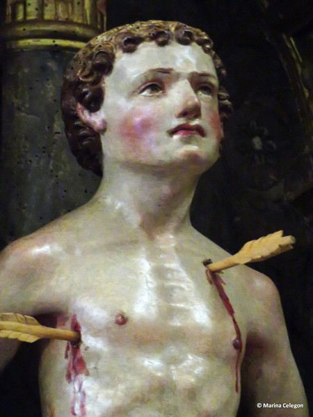 Sembra che in origine le statue fossero collocate diversamente: la statua di San Rocco era posta nella nicchia della cimasa, mentre, nelle tre nicchie della parte inferiore, al centro era posta una statua della Madonna (ora scomparsa), fra i Santi Fabiano e Sebastiano.