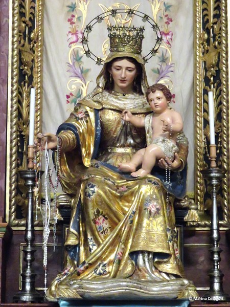 La statua della Madonna con Bambino, che ha preso il posto di una pala è di Luigi Piccini o Pizzini della fine del XIX secolo. I dieci riquadri con dipinti i Misteri gaudiosi e dolorosi che affiancano ai lati l’altare sono opera di Pietro Girardi, trentino abitante a Tolmezzo, di cui si vedono firma e data, 1642, su una delle tele.