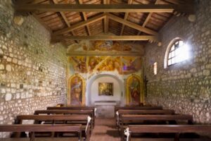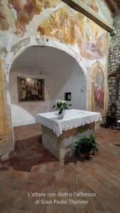 All’interno conserva affreschi di Gian Paolo Thanner.