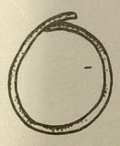 Costituito da un filo sagomato ‘a vera’ a sezione circolare con le estremità accostate, è un monile molto semplice dalla forma attestata sia in contesti riferiti alla popolazione romana autoctona, come l’anello in ferro di Mossa, sia in sepolture longobarde, come la tomba 53 di Cividale-San Giovanni.