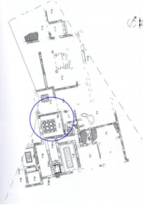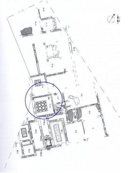 Il pavimento si riferisce quindi alla terza fase di vita della villa. L’ambiente si affacciava su un’area verde (vano 18) ed era situato nell’ala residenziale del complesso.