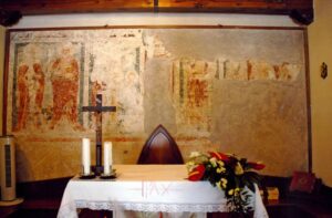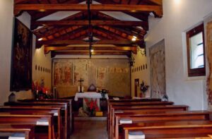 All’interno sono ancora visibili pregevoli affreschi del XIV secolo, opere di grande valore artistico che ritraggono una Crocifissione ed ai lati figure di santi ed un quattrocentesco affresco di San Sebastiano.