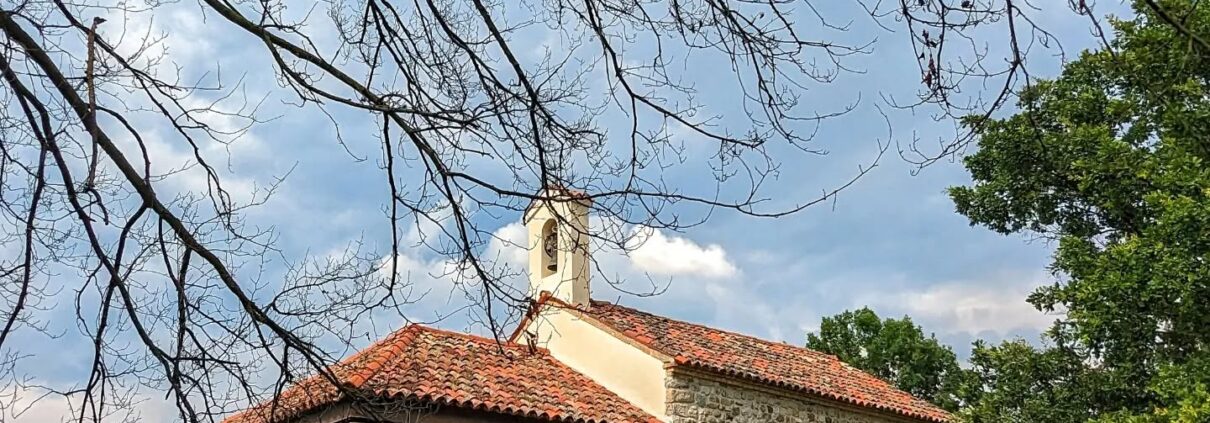 La facciata in pietra regolare, sormontata da una monofora campanaria, è preceduta da un porticato su pilastri ricostruito nel Novecento sull’impianto originario cinquecentesco. L’interno, con copertura a capriate a vista e piccola abside semicircolare, è arredato con semplicità: un altare ligneo ed un crocifisso in legno del XVIII secolo.