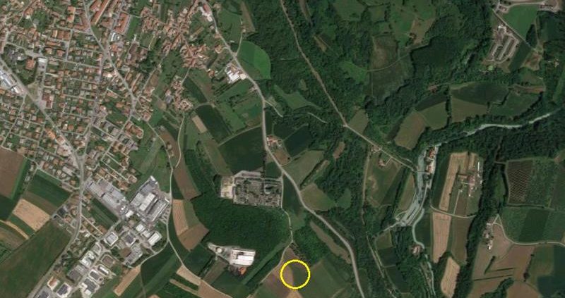 Durante le ricognizioni effettuate in occasione della sua tesi di laurea in Topografia dell’Italia Antica (università di Trieste, 1996-1997), E. Mian individuò materiale affiorante in tre distinte aree, poste a poca distanza tra loro nell’area a sud del cimitero: la prima su terrazzamento con un muretto in pietre e laterizi riutilizzati, la seconda con laterizi e ciottoli e la terza con concentrazione di laterizi.