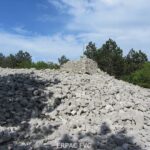 In corrispondenza del lato verso nord-est, quello più facilmente raggiungibile, l’apparato difensivo dovette essere particolarmente imponente, date le dimensioni delle sue macerie rilevate dal Marchesetti, pari a 4-5 metri di altezza e a 16 metri di larghezza.
