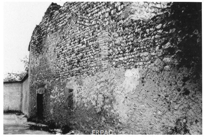 Durante i vari rifacimenti gli originali ciottoli di fiume, ancora visibili nella parte interna, sono stati sostituiti con laterizi e pietre squadrate. La cella campanaria e la cuspide sono aggiunte quattro-cinquecentesche. Ben conservate le feritoie strombate con archetto sovrastante in mattoni aggettanti.
