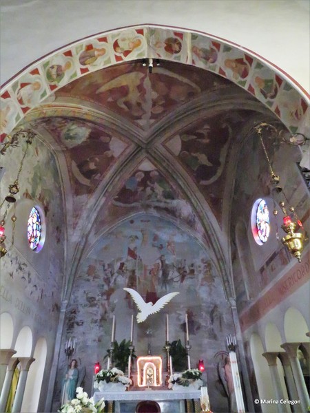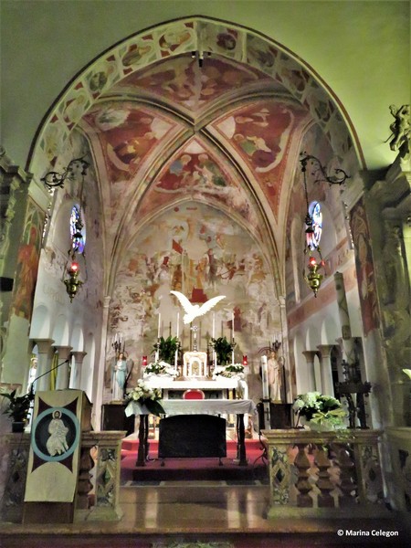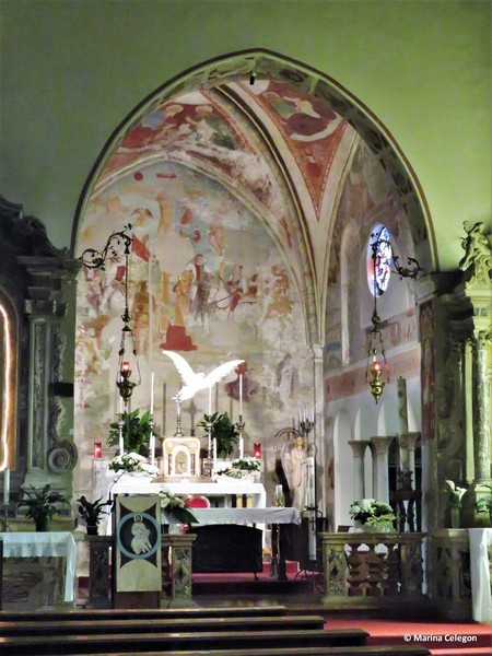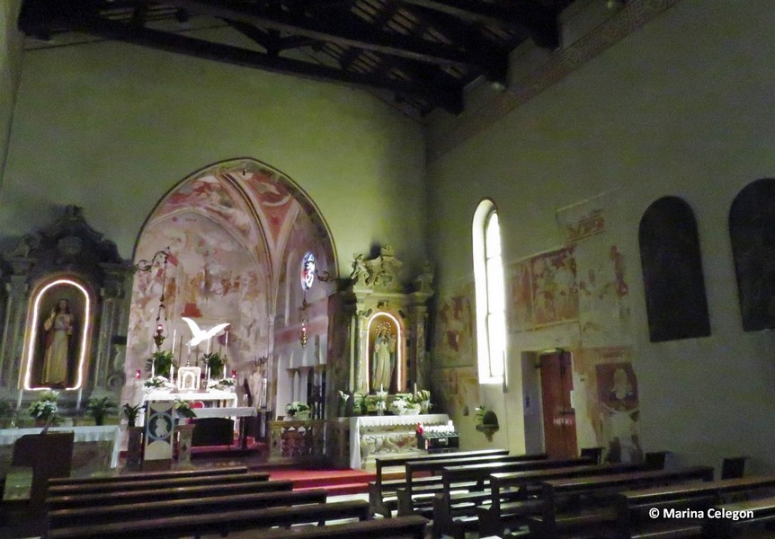 Gli affreschi del coro e delle pareti sono attribuiti alla scuola di pittura sanvitese e, eccetto per quelle non attribuite direttamente al Bellunello, a Giovanni Pietro Albanese più noto come Pietro da San Vito (1495-1529).