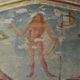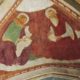 Anche le altre due pareti del coro presentano resti di affresco, interrotti da finestre rotonde e, in basso, dall’accesso alle due aule adiacenti. Sulla parete destra si vede una scena di Resurrezione nella lunetta e al di sotto una serie di figure di santi, interrotte dalla cappella della misericordia. Sulla parete sinistra la decorazione, che doveva essere speculare, è in gran parte perduta. Nell’intradosso dell’arco vi sono, racchiuse in formelle, dieci figure di sante e martiri della chiesa. In basso, a completamento dell’arco ed a grandezza naturale vi sono le figure di San Bartolomeo, con la propria pelle in spalla, e di un Santo Pontefice.