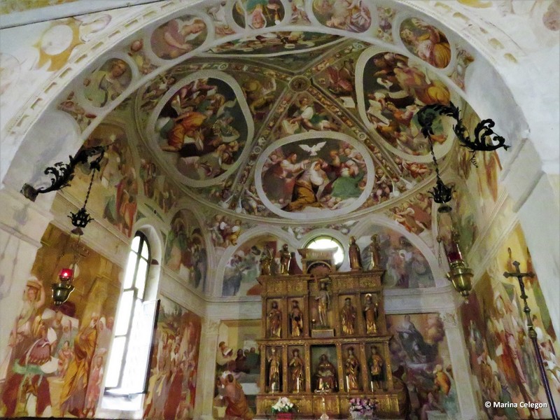 Alcuni decenni dopo il presbiterio venne arricchito con un ciclo di affreschi realizzati da Pomponio Amalteo, pittore nato a Motta di Livenza nel 1505 e morto a San Vito al Tagliamento nel 1588. Fu allievo e poi genero del Pordenone, il cui insegnamento resta riconoscibile nella sua vasta produzione. Era pittore molto apprezzato in ambito regionale e sue tele e affreschi si trovano in molte località del Friuli.