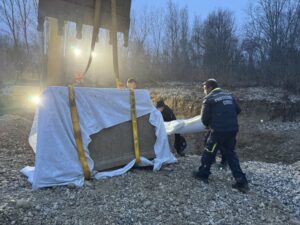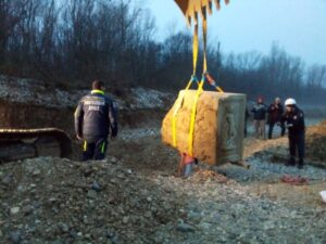 Le operazioni, che sono durate l’intera giornata, sono state rese possibili grazie al supporto logistico della Protezione Civile regionale e all’aiuto fornito dalla ditta Natison Scavi di San Giovanni al Natisone, che ha messo a disposizione un mezzo pesante che consentisse il sollevamento ed il trasporto del reperto.