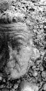 Nell’area, oltre al monumento, sono stati individuati anche un’urna funeraria in pietra senza coperchio, due basi in calcare, alcuni mattoni e pezzi di tegole e un volto maschile in calcare.