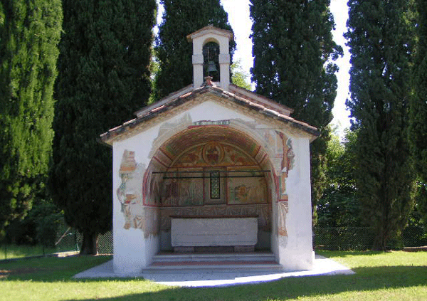 Una vecchia fotografia dei Civici Musei di Udine mostra com’era la chiesetta di San Giovanni del Romito (degli Eremiti), sulla strada per Udine, demolita nel 1909: costruzione di piccola dimensione, ad aula unica, campaniletto al colmo con motivo ad archetti ciechi incrociati sotto la linea di gronda, preceduta da un ampio portico secentesco.