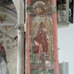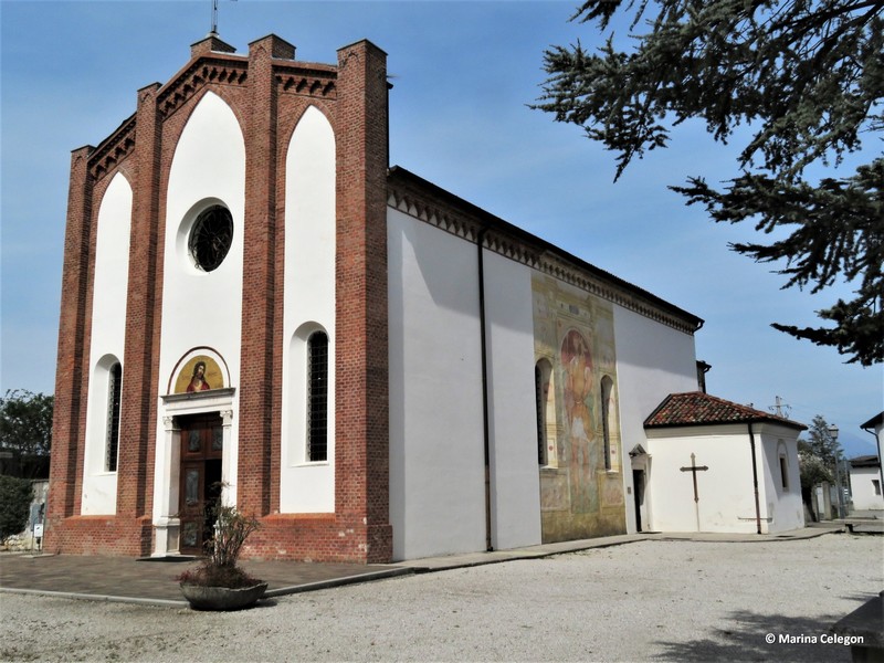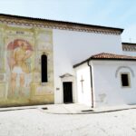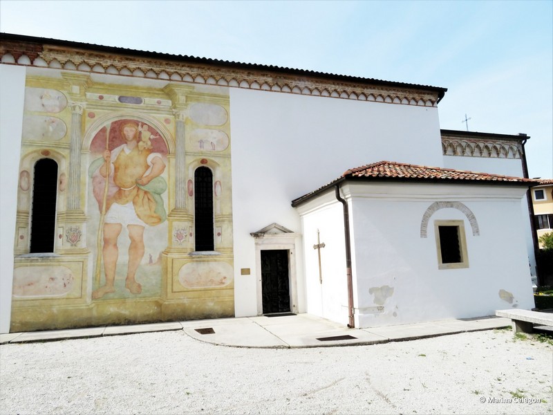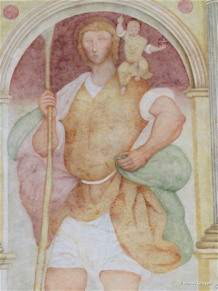 All’esterno, sulla facciata sud della chiesa si trova un affresco raffigurante San Cristoforo, che colpisce per le sue dimensioni e per la buona qualità artistica. Ritenuto della prima metà del Cinquecento non ne è noto l’autore, ma stilisticamente si ispira ai modelli diffusi dal Pordenone. L’affresco è stato restaurato nel 2013