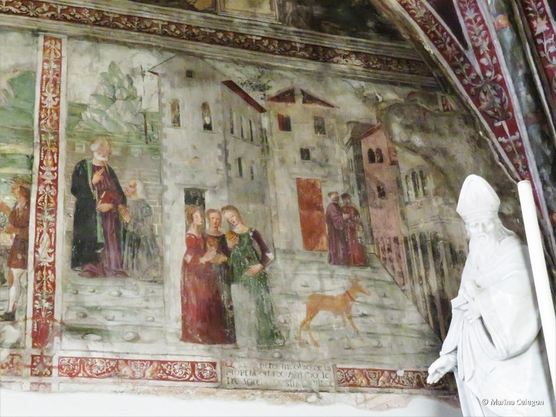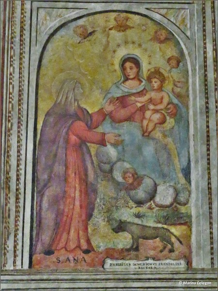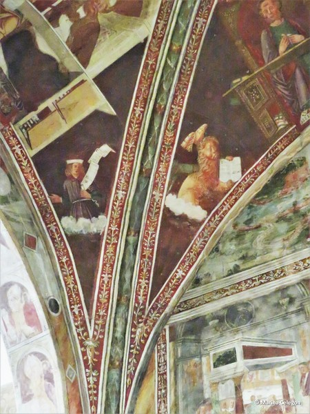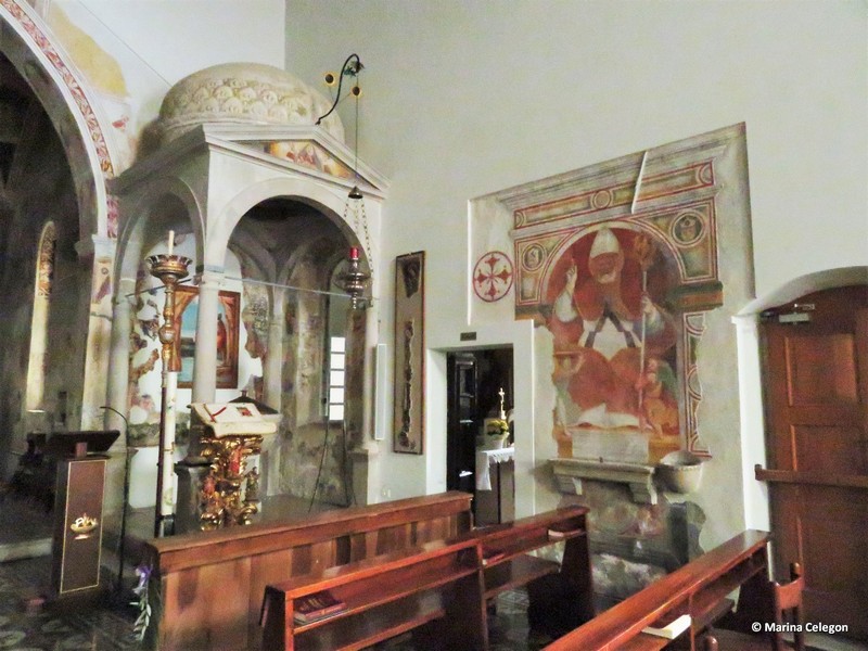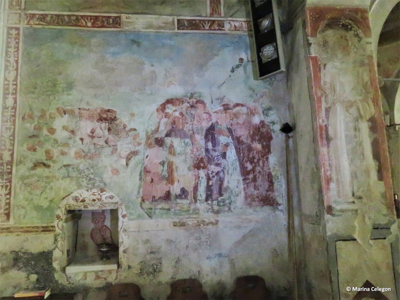 All’esterno dell’arco presbiteriale restano tracce di un’Annunciazione e di un Padre Eterno in posizione centrale.