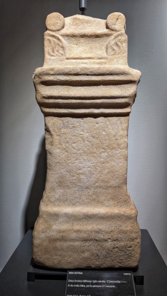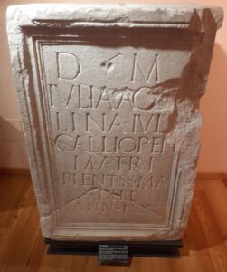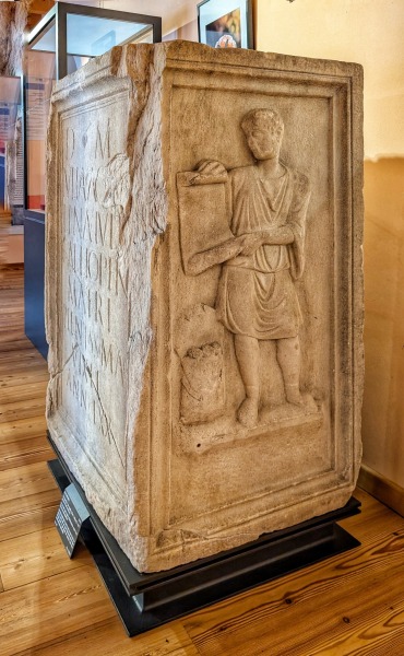 Molte sono le iscrizioni, le quali gettano luce sull’organizzazione e sulla storia dell’antica stazione doganale. Una vetrina, poi, è dedicata ai materiali di piccole dimensioni, che comprendono una fibula, un frammento di lucerna, recipienti in ceramica e vetro e altri oggetti connessi al culto di Mitra.