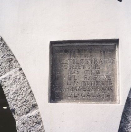 Secondo alcuni proviene da Zuglio ed è stata portata a Tolmezzo nel XVI sec., mentre, secondo il Valvasone, l’epigrafe si trovava a Luvincis da identificare con Luincis, piccolo centro della Val di Gorto; per questo, si può ipotizzare che l’iscrizione sia stata ritrovata lì e successivamente portata a Tolmezzo.