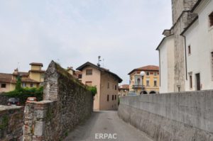 La centa non si sviluppava, come spesso accade, intorno alla chiesa, ma subito accanto. L’edificio di culto rimaneva fuori dall’apprestamento difensivo. Infatti, durante l’attacco turco del 1499 la cortina resse e solo la chiesa restò danneggiata.