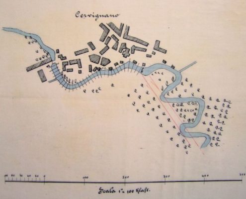 A Cervignano si effettuarono lavori di rettifica dell’Ausa, nel 1873, con ritrovamento di armi ed attrezzi in ferro.