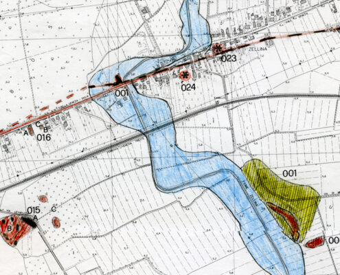 Presenta quattro aree di concentrazione di materiale: le tre di dimensioni maggiori restituiscono abbondante materiale archeologico, tra cui soprattutto…