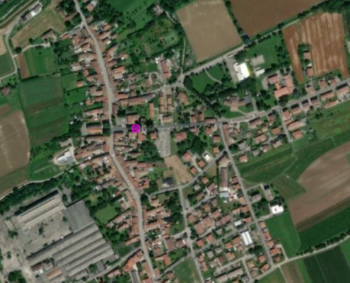 A seguito dello scavo per le fondamenta di una casa, a fianco della Statale n. 56, all’altezza del Km. 27 in direzione Udine e a 30 metri circa a destra della strada, si accertò la presenza di frammenti di tavelloni, di ceramica grigio-gialla…