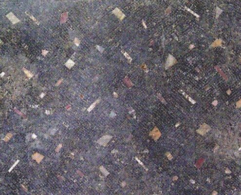 All'interno della Villa di Ronchi troviamo anche un mosaico a campo bianco con orditura obliqua, delimitato da una fascia nera. Al centro si trova un tappeto rettangolare composto da tessere nere, incorniciato da due fasce concentriche — una…
