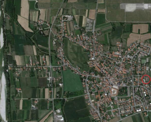 Su terreni arativi, attualmente con fossi e boschetti intermedi, si rinvennero macerie romane (embrici, coppi, mattoni) in ampia diffusione e consistenza, tanto da configurare un insediamento importante con almeno 3 o 4 concentrazioni, forse…